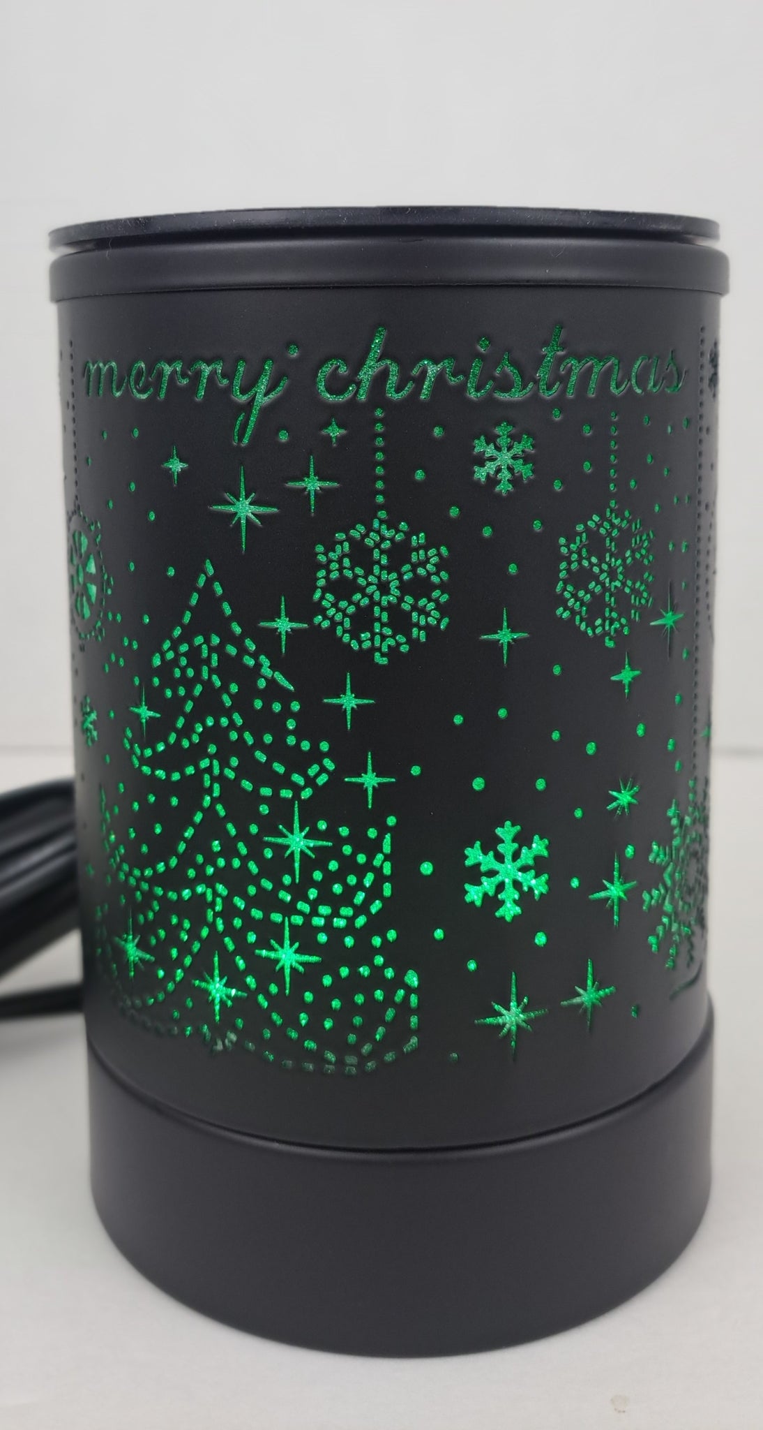 Metal electric wax warmer with Christmas theme. Choose from 7 Led colors. Add your favorite holiday scents. This warmer can be used with essential oils or Wax Melts/Tarts